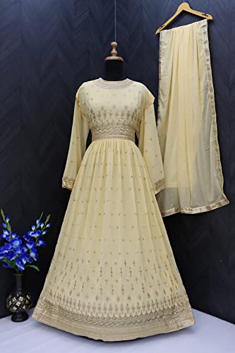 RUDRAPRAYAG Georgette Embroidered Semi-Stitched Gown for Women Yellow