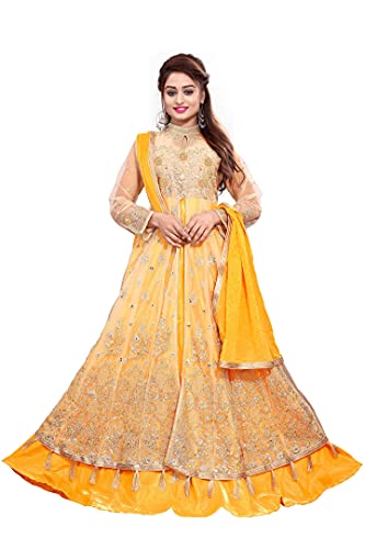 RUDRAPRAYAG Women's Long Gown (5407-Ylow_Yellow_Free Size, 5407-Ylow_Yellow_Free Size, Fit and Flare, Floor Length)