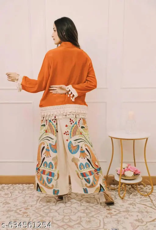 Rutaba Premium Rayon A-Cut Top With Lace Work & Digital Print Plazo Set | 5 Colour Branded Co-Ord Set for Women | Top & Plazo