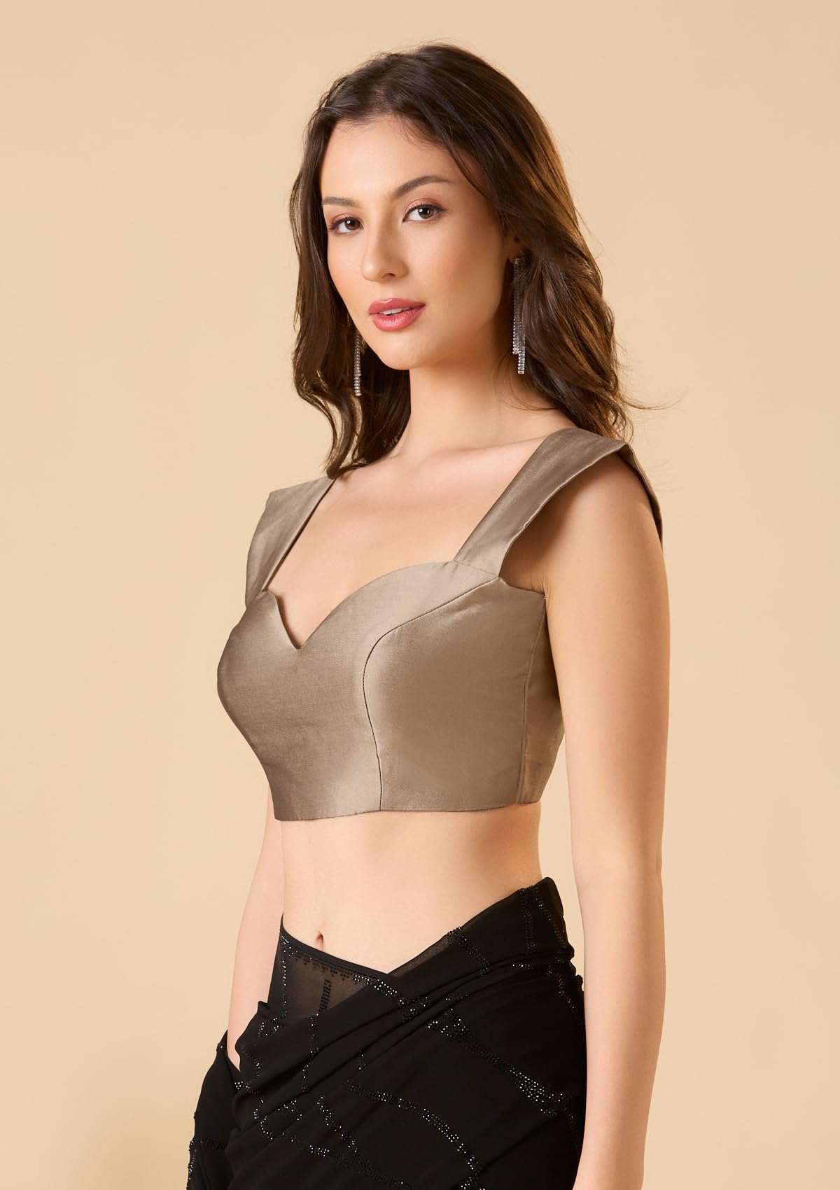 S SALWAR STUDIO Copper Taffeta Sweetheart Neck Sleeveless Readymade Blouse