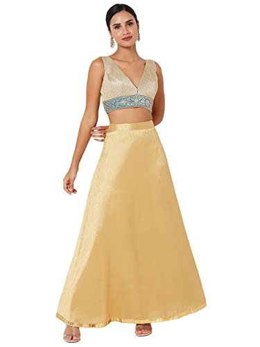 S SALWAR STUDIO Women's Gold & Blue Banarasi Self Design Readymade Saree Blouse-SSB4170-GOLD