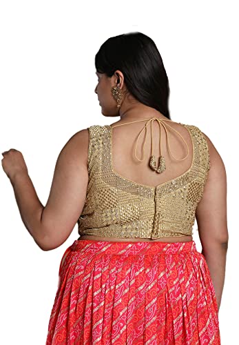 S SALWAR STUDIO Women's Gold Silk Blend Readymade Saree Blouse-PLSSB00046-GOLD