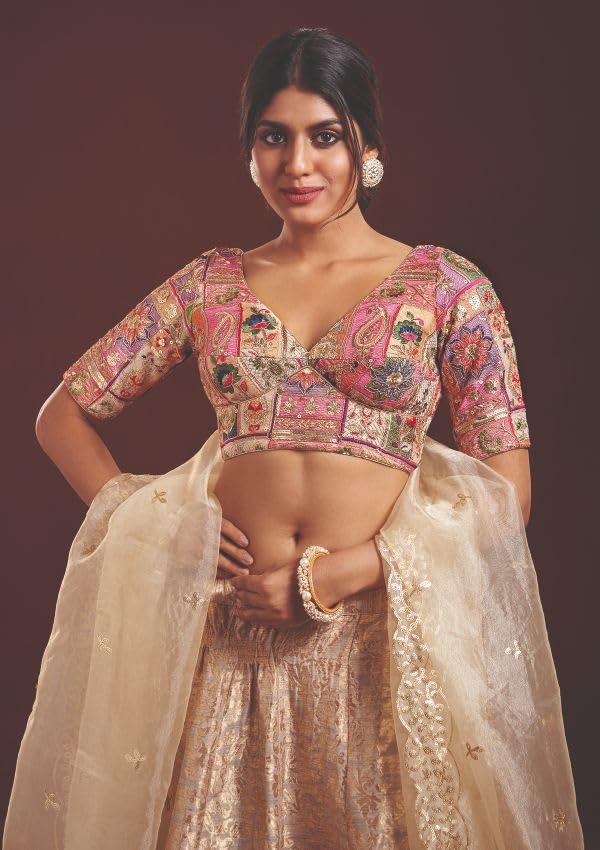Salwar Studio Multicolour Embroidered Readymade Blouse- Pack of 1.