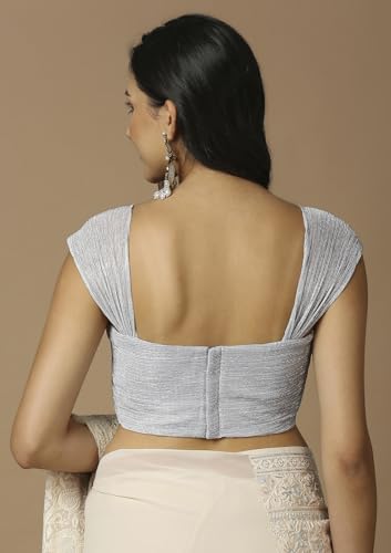 Salwar Studio Women's Silver Shimmer Saree Blouse-RI-0045-SLVR-32