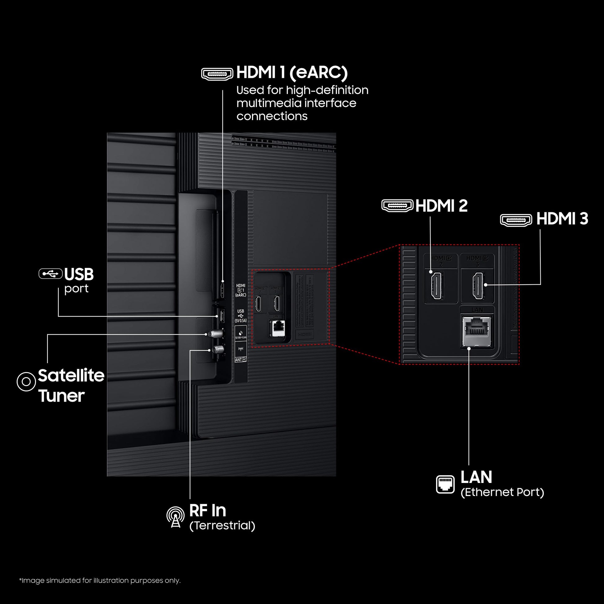 - Connectivity: Enjoy seamless integration with 3 HDMI Ports for connecting your Set-Top Box/DTH, Soundbar, Home Theater, Gaming Console, and more. Plus, stay flexible with 1 USB-A Port for easy access to Hard Drives and other USB-compatible devices. Stay connected with Wi-Fi 5, Bluetooth 5.2, and HDMI eARC, along with an Ethernet LAN Port for stable wired internet. Additional features include Anynet+ (HDMI-CEC) for unified control and RF In for Terrestrial/Cable input.