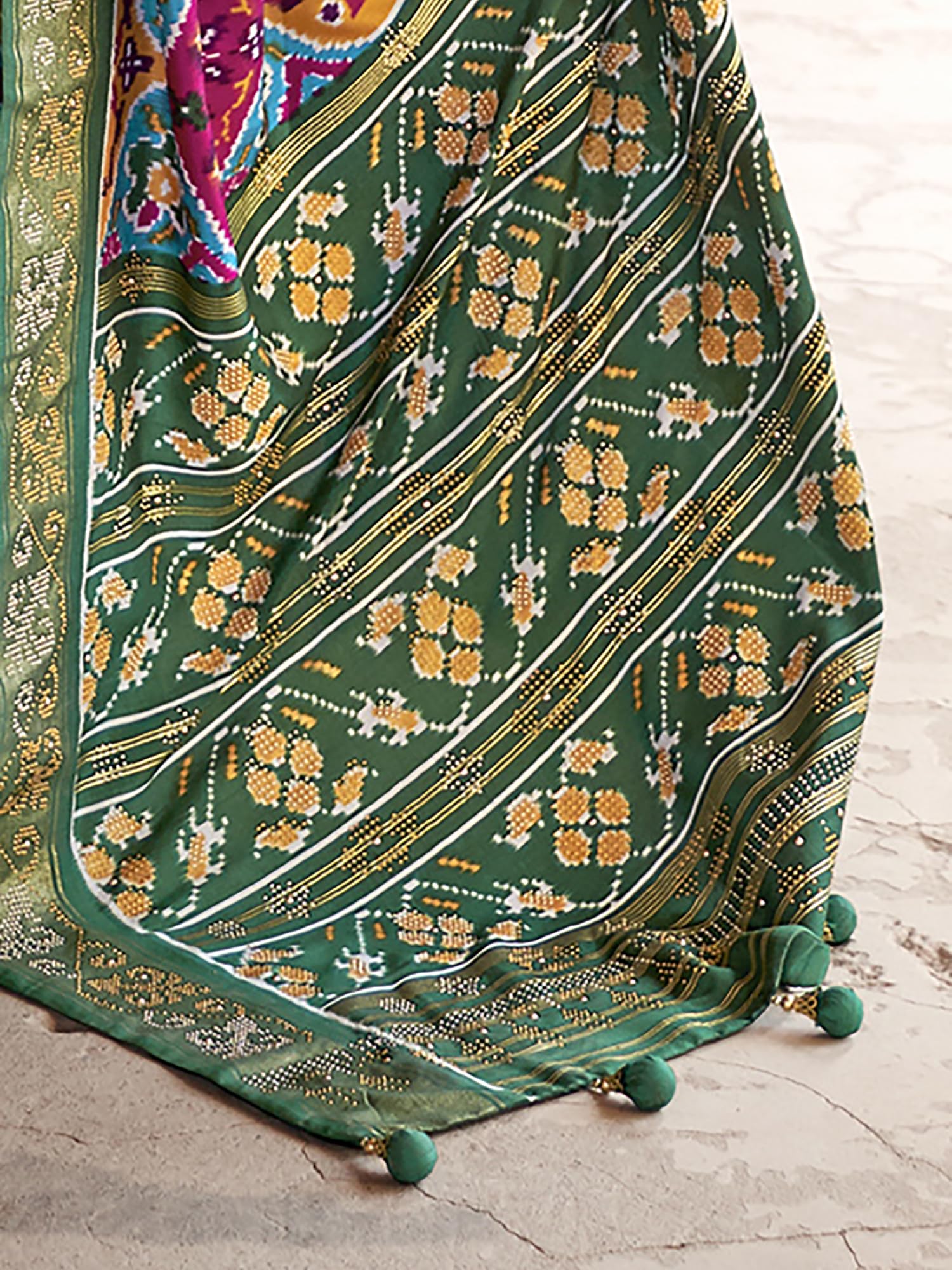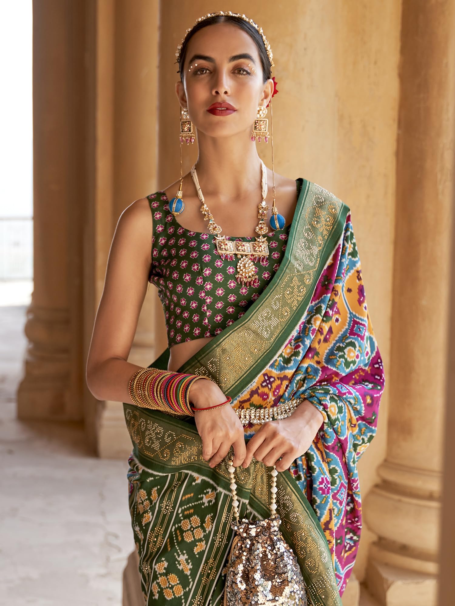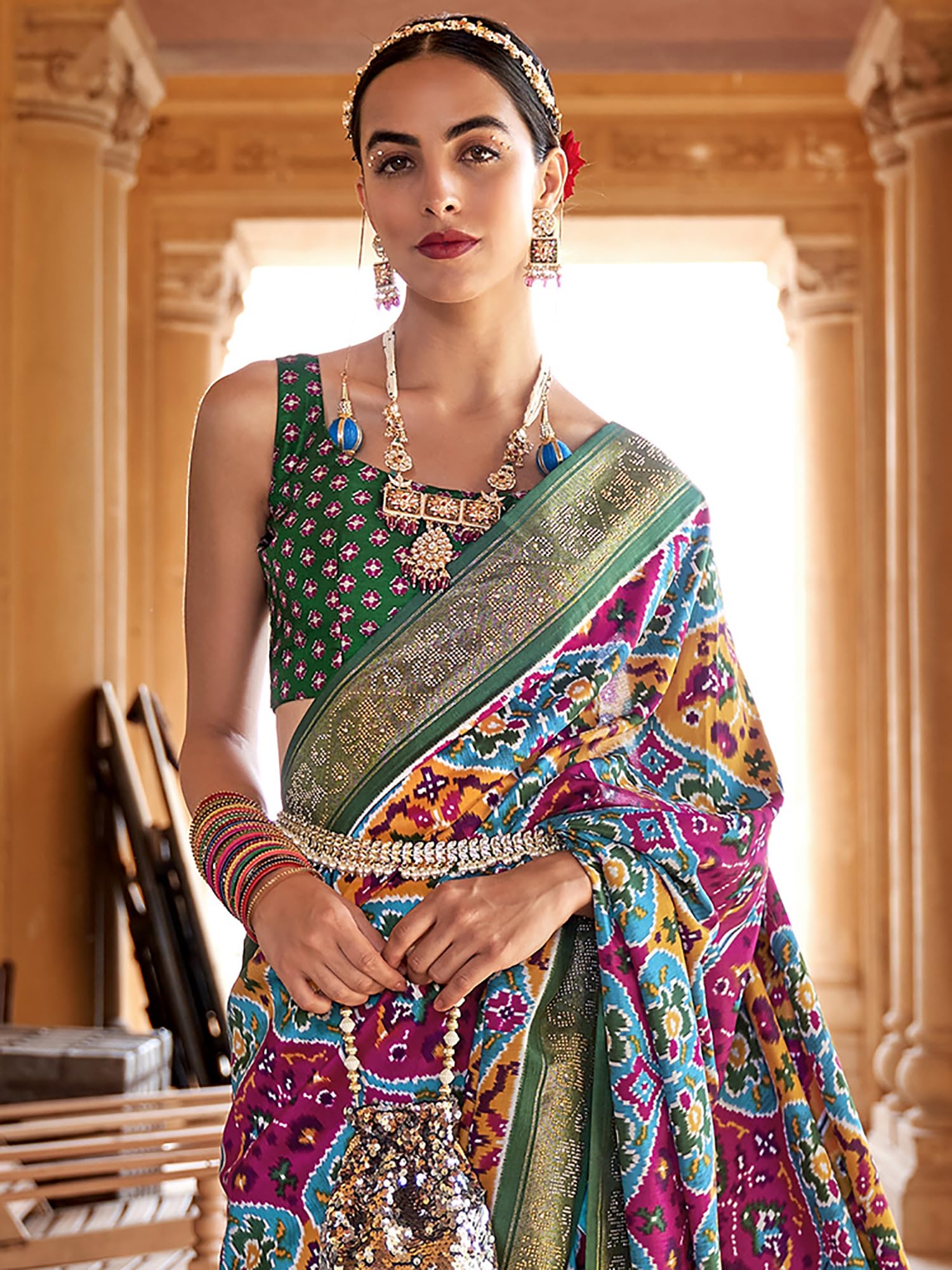 - Saree Color: Multicolor || Blouse Color: Green