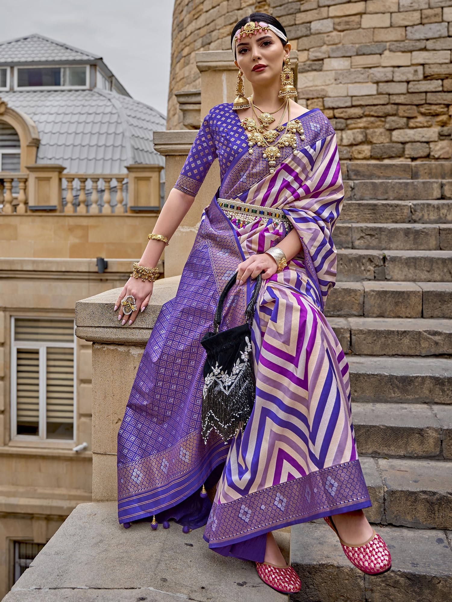 • Saree Color: Violet || Blouse Color: Violet