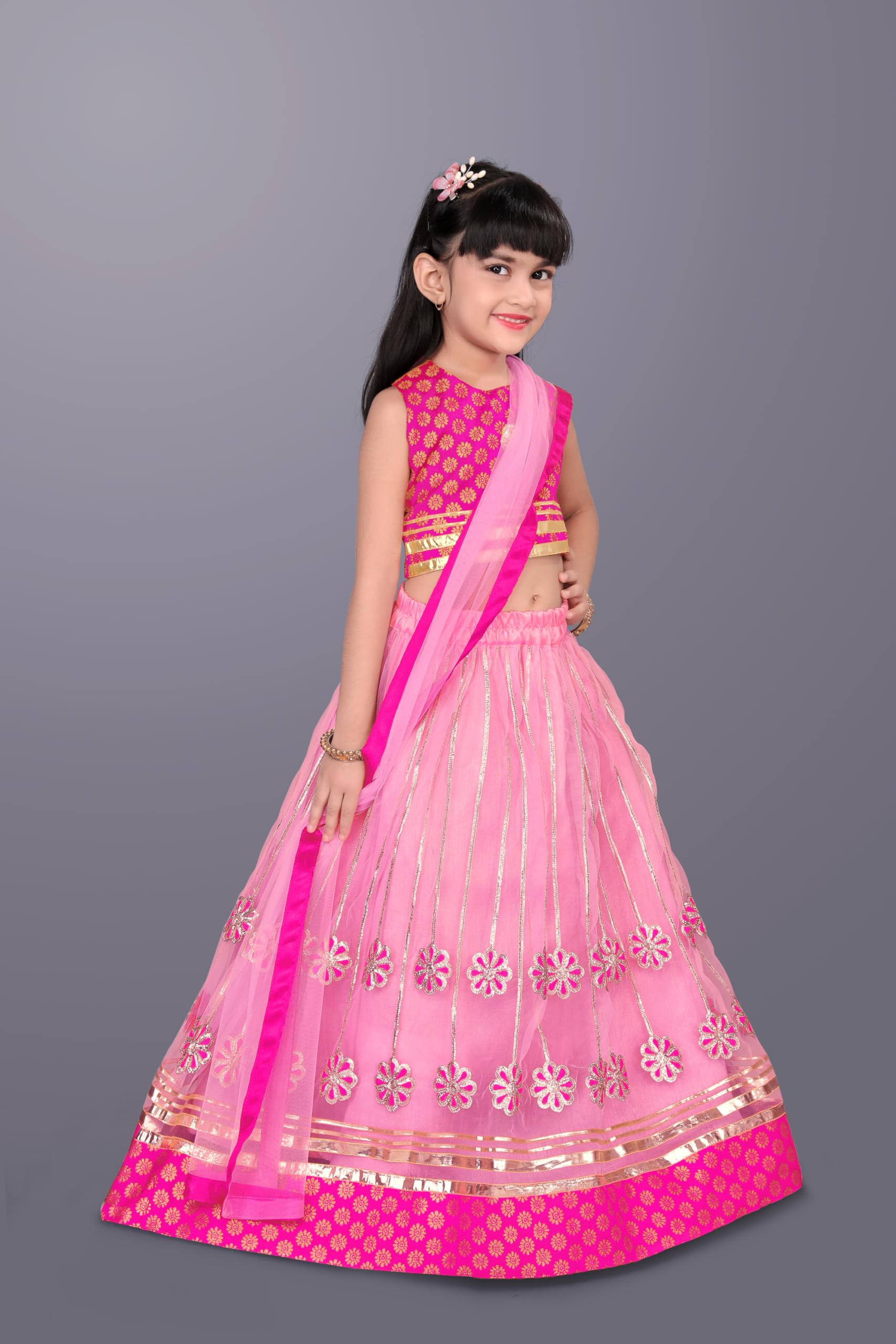 satyamfab Girls Ready to Wear Lehenga Choli Set – Elegant Jacquard Blouse, Embroidery Ribbon Work Lehenga & Gota Lace Net Dupatta9-10 Years