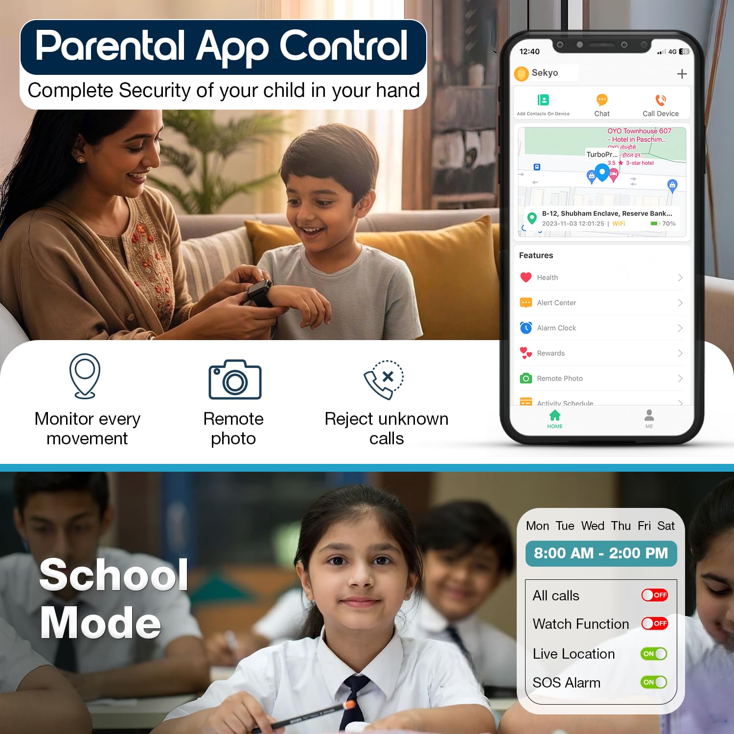 • [Parent Control App] : Full parental control at your fingertips! Enable class mode, disable selected functions, or lock the watch screen remotely. Keep distractions away during school hours while ensuring your child’s digital safety.