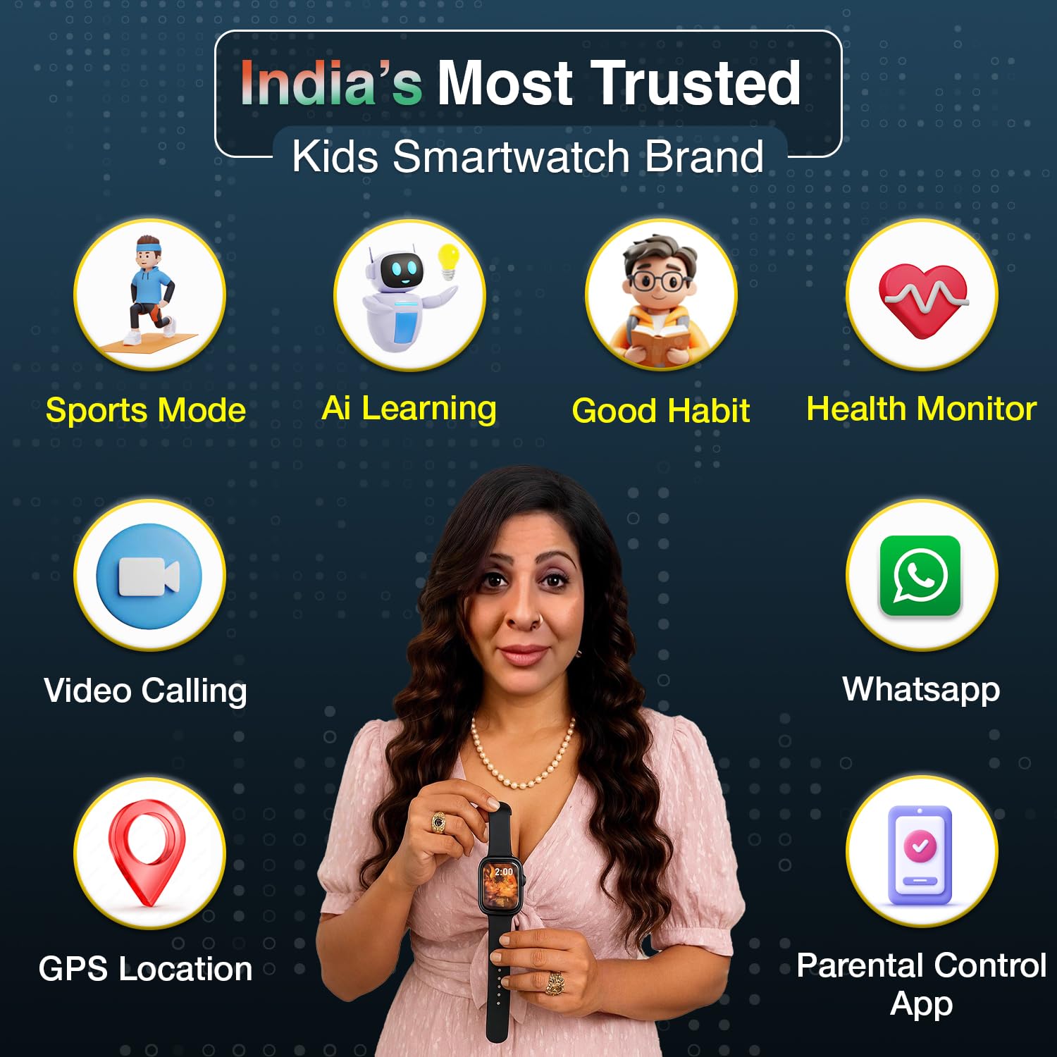 sekyo 'Neo Fit' 4G Kids Smartwatch with AI Learning Coach | Whatsapp, Video Call, GPS Tracker, Health & Activity Tracker, Habit Coach| Edu-Games, Step Count, Camera, Sim Card Parental App, Boys/Girls