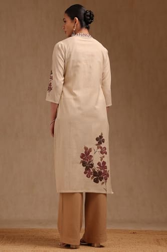 Soch Womens Beige Cotton Flex Floral Print Kurta with Thread Work