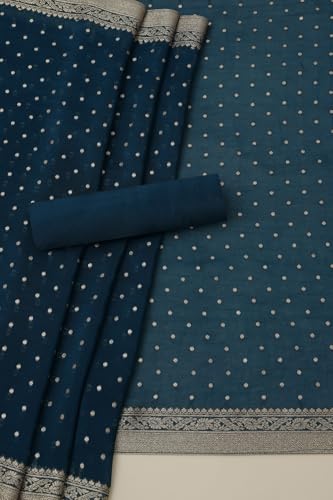 Soch Womens Blue Silk Blend Floral Print Unstitch Dress Material With Sequins