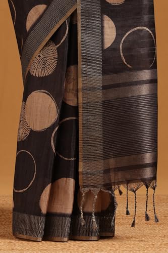 Soch Womens Charcoal Tussar Geometric Printed Saree