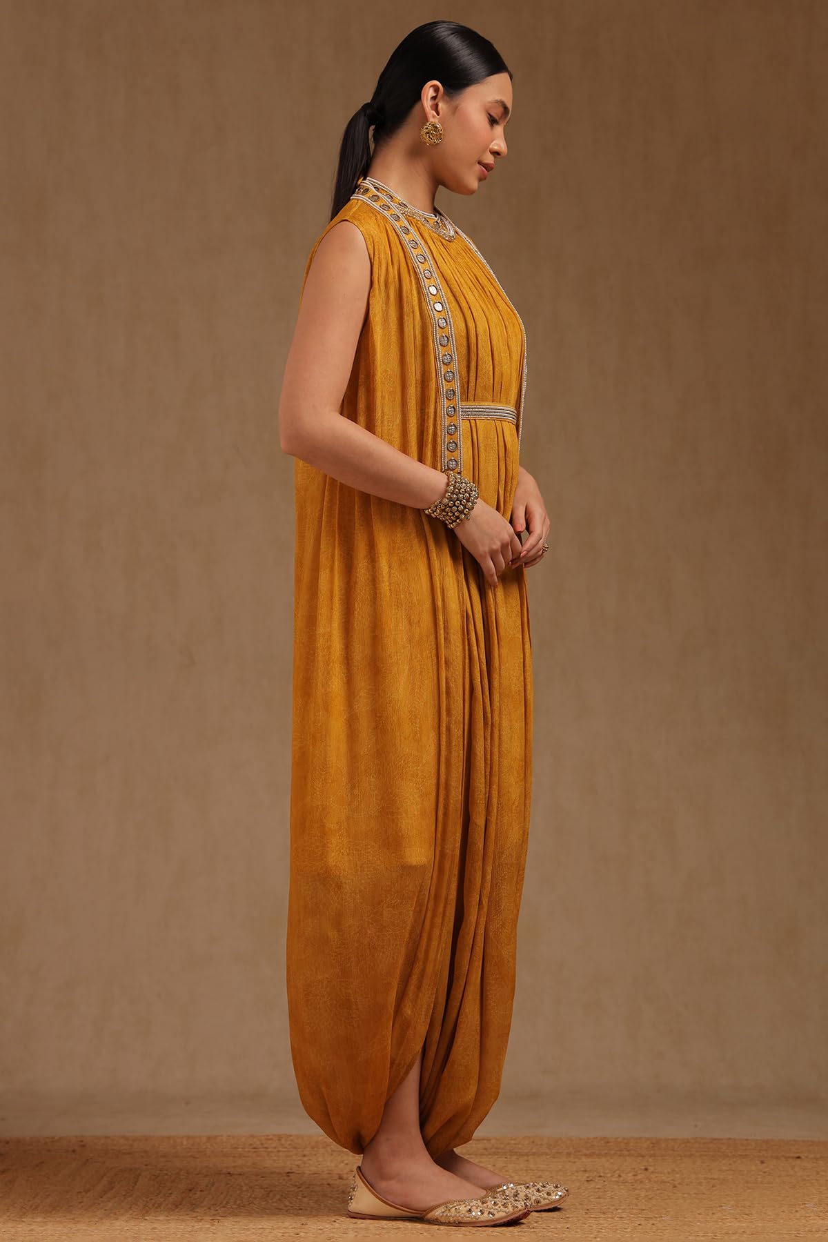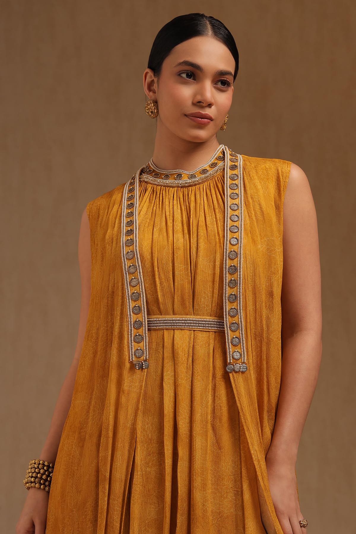 Soch Womens Chinon Botanical Print Dress with Beads and Stones