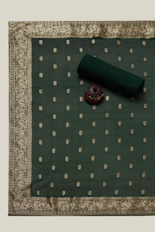 Soch Womens Green Crepe Bandhani Print Unstitch Dress Material