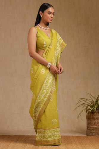 Soch Womens Light Green Art Silk Batik Print Saree With Zari Woven