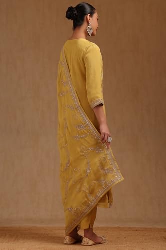 Soch Womens Mustard Tissue Embroidered Suit Set With Zari