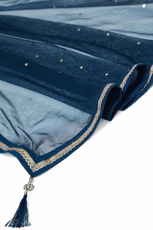 Soch Womens Navy Blue Chinon Blend Botanical Print Gown With Sequins