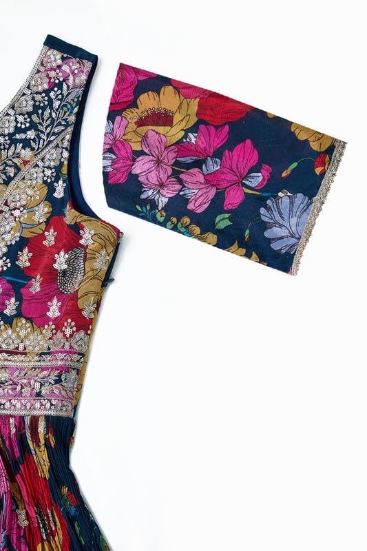 Soch Womens Navy Blue Chinon Blend Botanical Print Alia Cut Gown