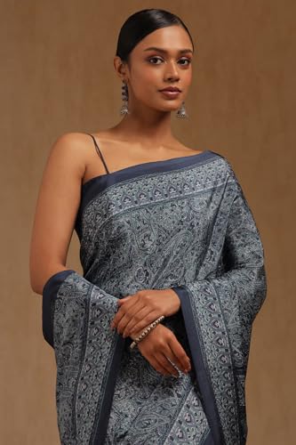 Soch Womens Navy Blue Crepe Ethnic Motifs Saree