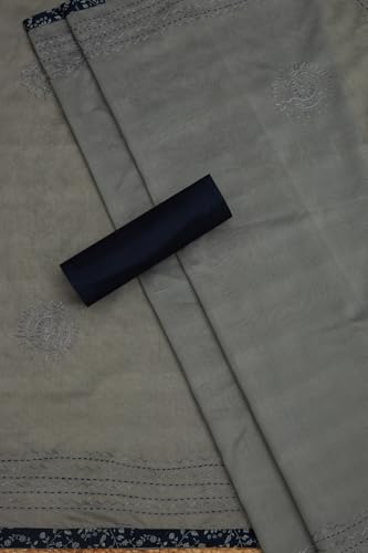 Soch Womens Navy Blue Jam Cotton Floral Print Unstitch Dress Material With Thread Work