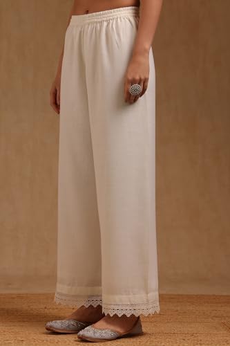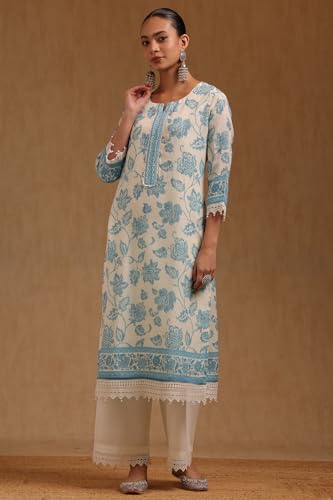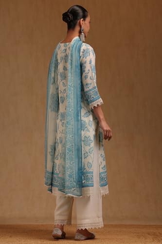 Soch Womens Off White Linen Botanical Printed Salwar Suit With Beads