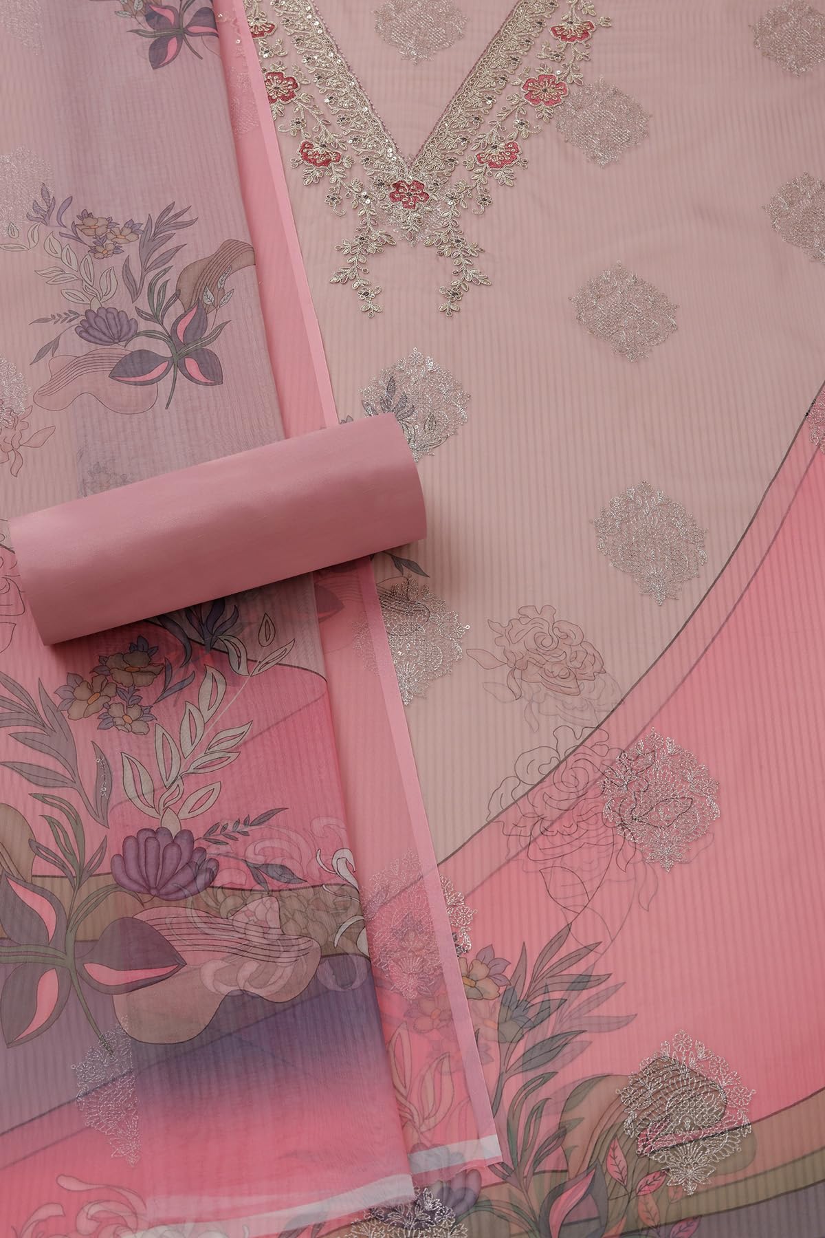 Soch Womens Organza Foil Print Unstitch Dress Material With Sequins