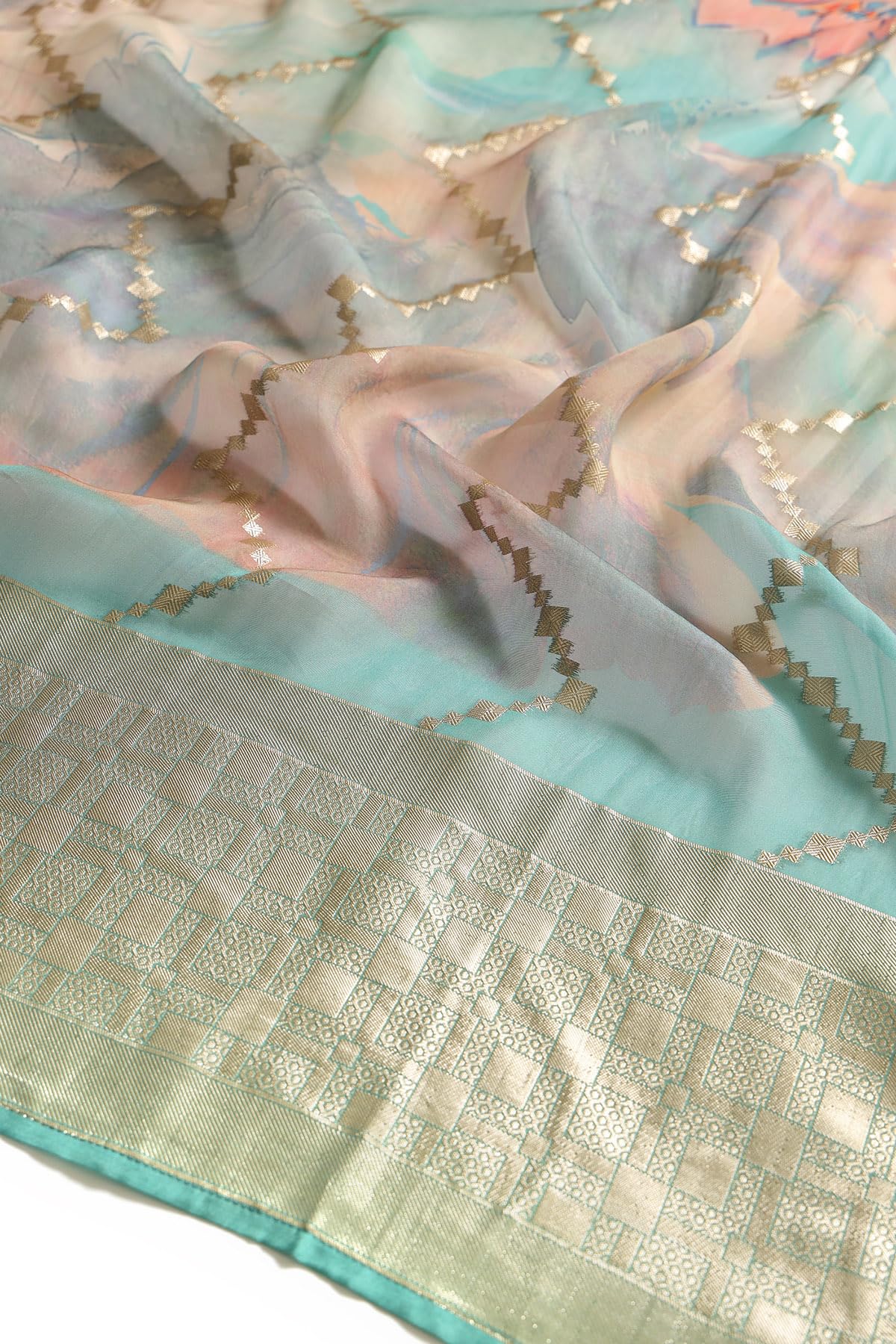 Soch Womens Turquoise Blue Organza Zari Woven Suit Set With Faux Mirror And Sequins