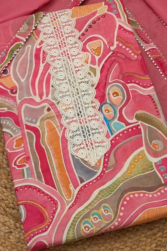 Soch Womens Pink Cotton Abstract Print Unstitch Dress Material With Lace