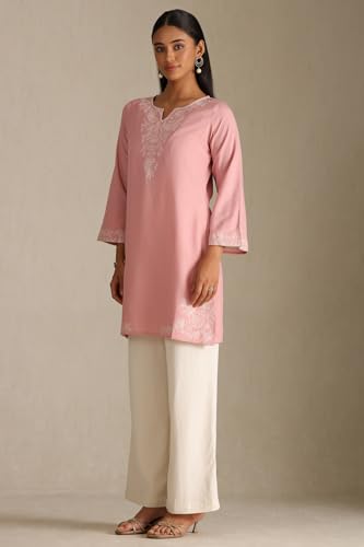 Soch Women's Rayon Embroidered Regular Kurta (CWA5KU61438_Peach_L)
