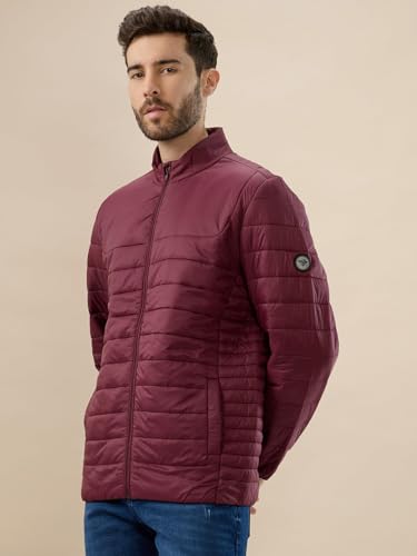 Status Quo Men’s Solid Lightweight Quilted Stand Collar Regular Fit Jacket | 100% Nylon | WINE | L Size