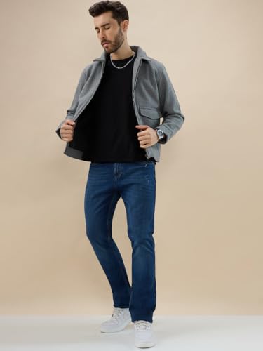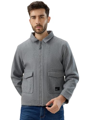 Status Quo Men's Solid Wool Blend Finish Spread Collar Front Flap Pocket Shacket | 90% Polyester,10% RAYON | GREY | 4XL Size