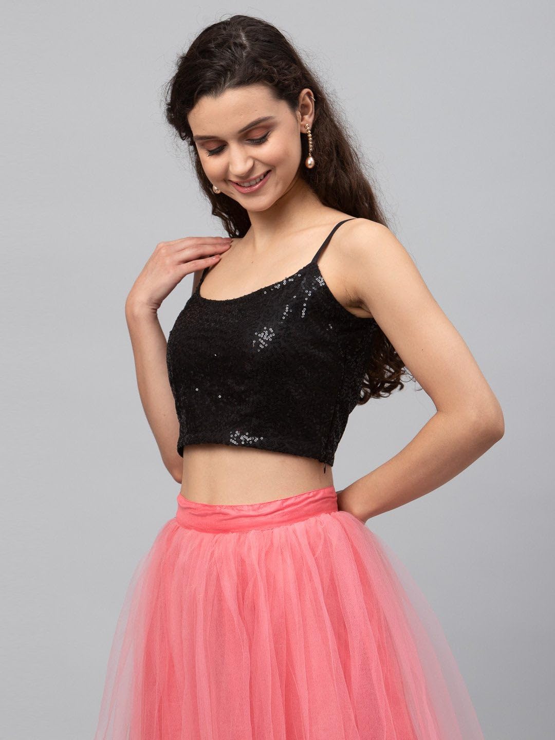 • Make a style statement with this net Blouse. This Blouse features all over sequin embroidery, with strap on the shoulder for a contemporary look