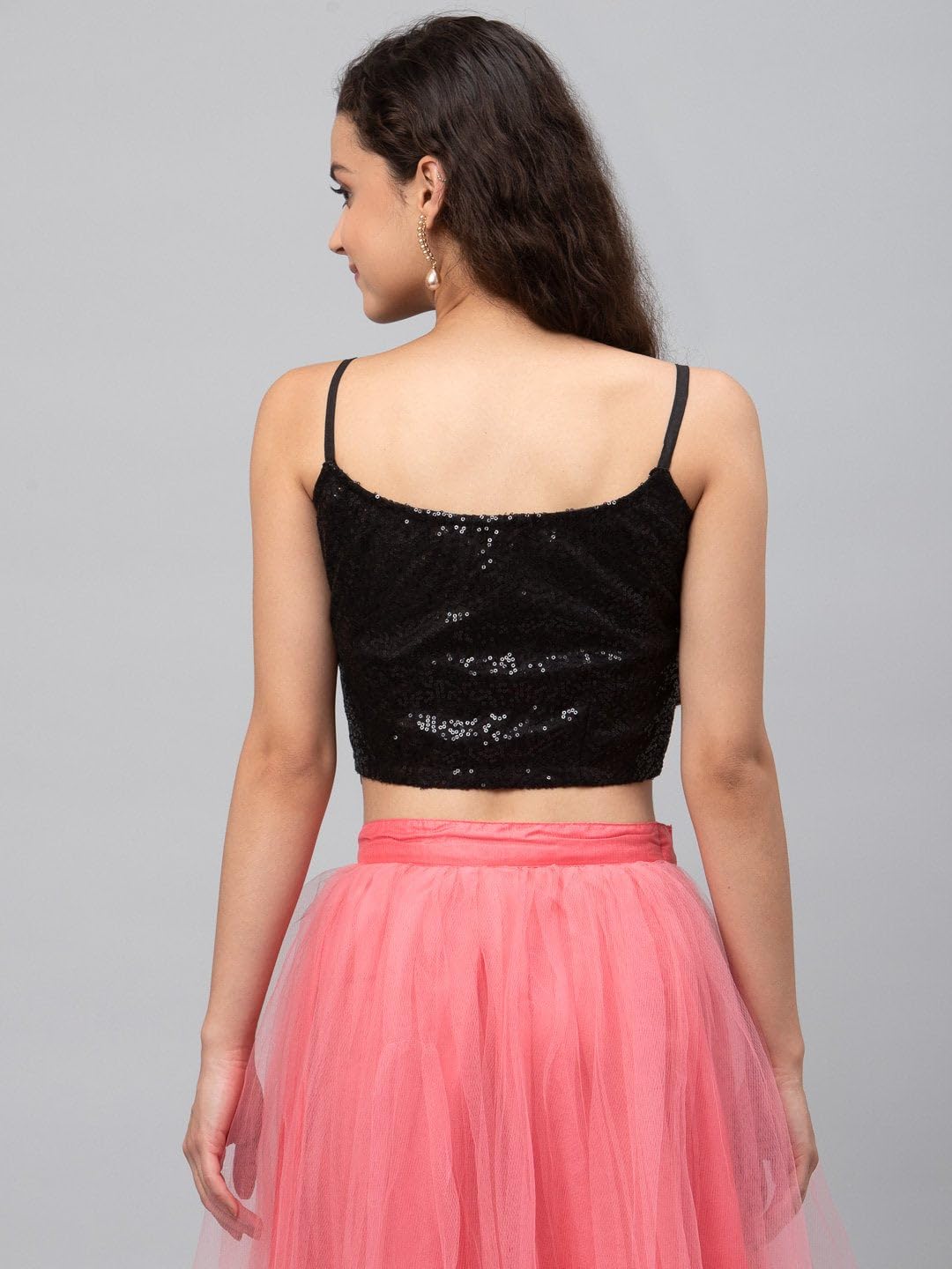 studio rasa Women's Plus Size Net Sequins Embroidered Spaghetti Readymade Saree Blouse for Wedding Party Festive (TPWC22121-2XL_BLA_Black_2X-Large)