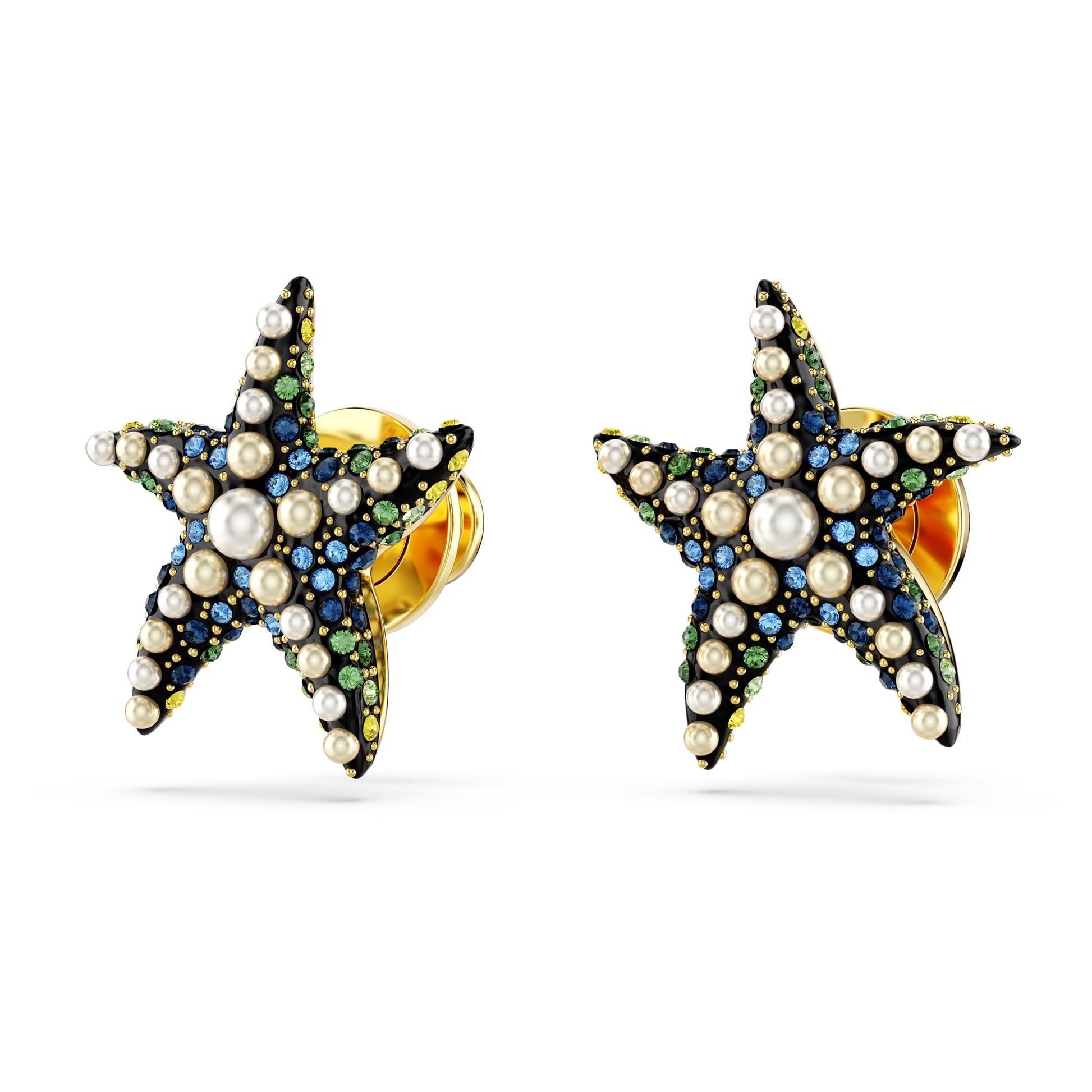 Swarovski Idyllia stud earrings, Starfish, Small, Multicolored, Gold-tone plated