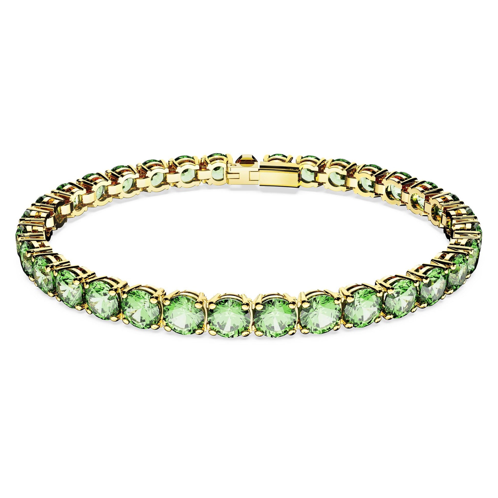 - One swarovski Matrix tennis bracelet with round mixed-cut green crystals, gold plated setting, with bracelet box