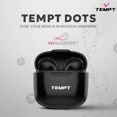 TEMPT Dots True Wireless in Ear Earbuds with up to 40Hrs Playtime, Bluetooth 5.2 Wireless Headphones, Touch Control TWS,100 hrs of Standby Time, IPX5 Water, Sweat Resistant (Black)
