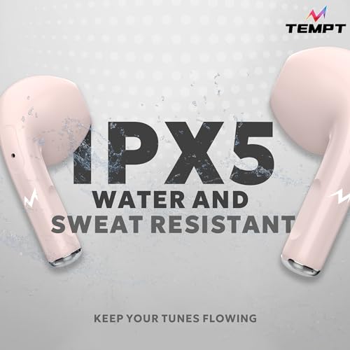TEMPT Dots True Wireless in Ear Earbuds with up to 40Hrs Playtime, Bluetooth 5.2 Wireless Headphones, Touch Control TWS,100 hrs of Standby Time, IPX5 Water, Sweat Resistant (Peach)