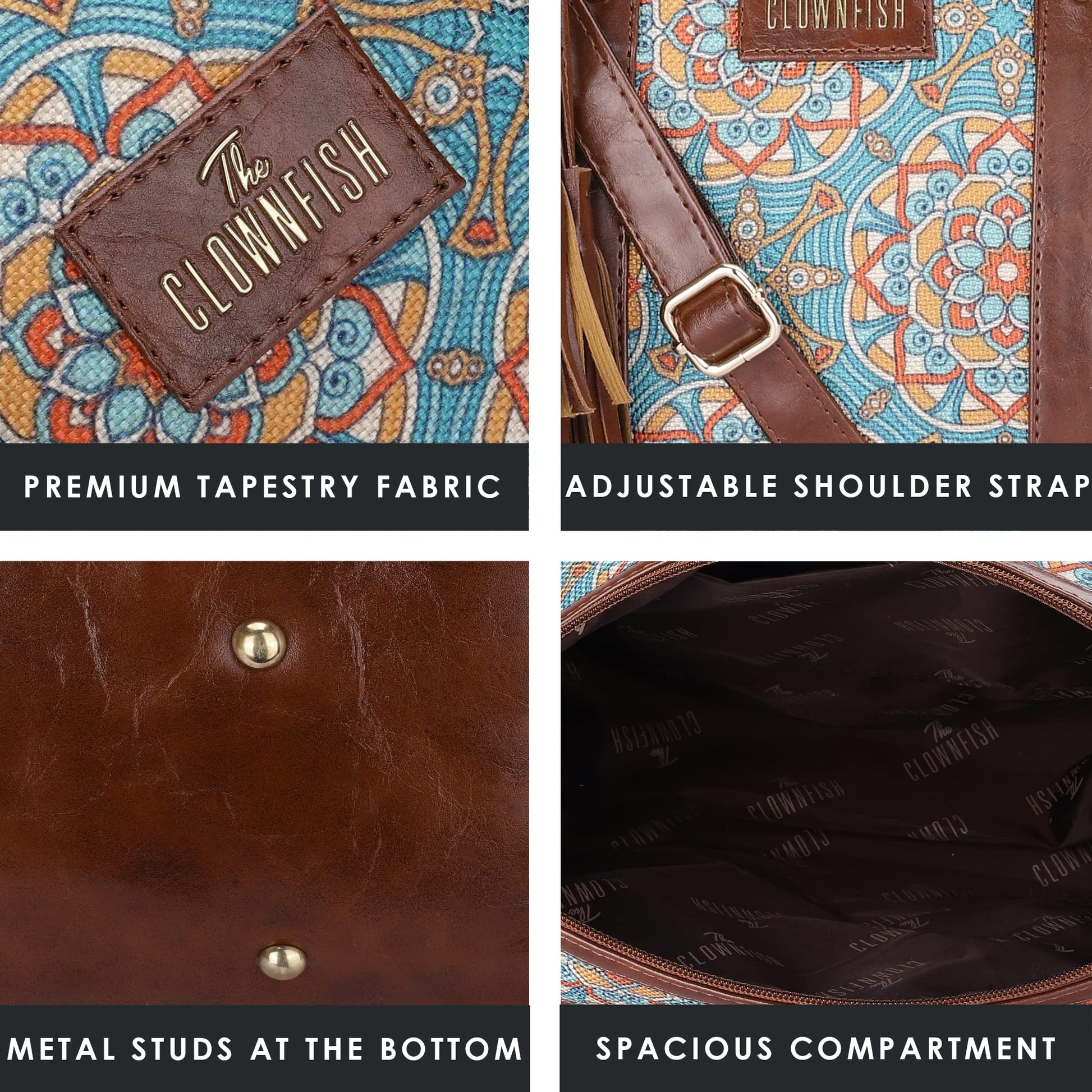 - STRUCTURE & DESIGN: This bag is perfectly designed with one roomy compartment that includes an open pocket for mobile, power bank and zip pocket for small accessories, coins etc. Metal studs at bottom protects the bag from dirt.