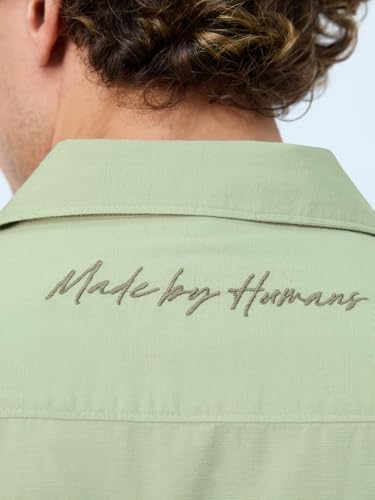 The Souled Store Cotton Linen: Aura Men and Boys Short Sleeves Collared Neck Green Embroidered Regular Fit Cotton Linen Shirt