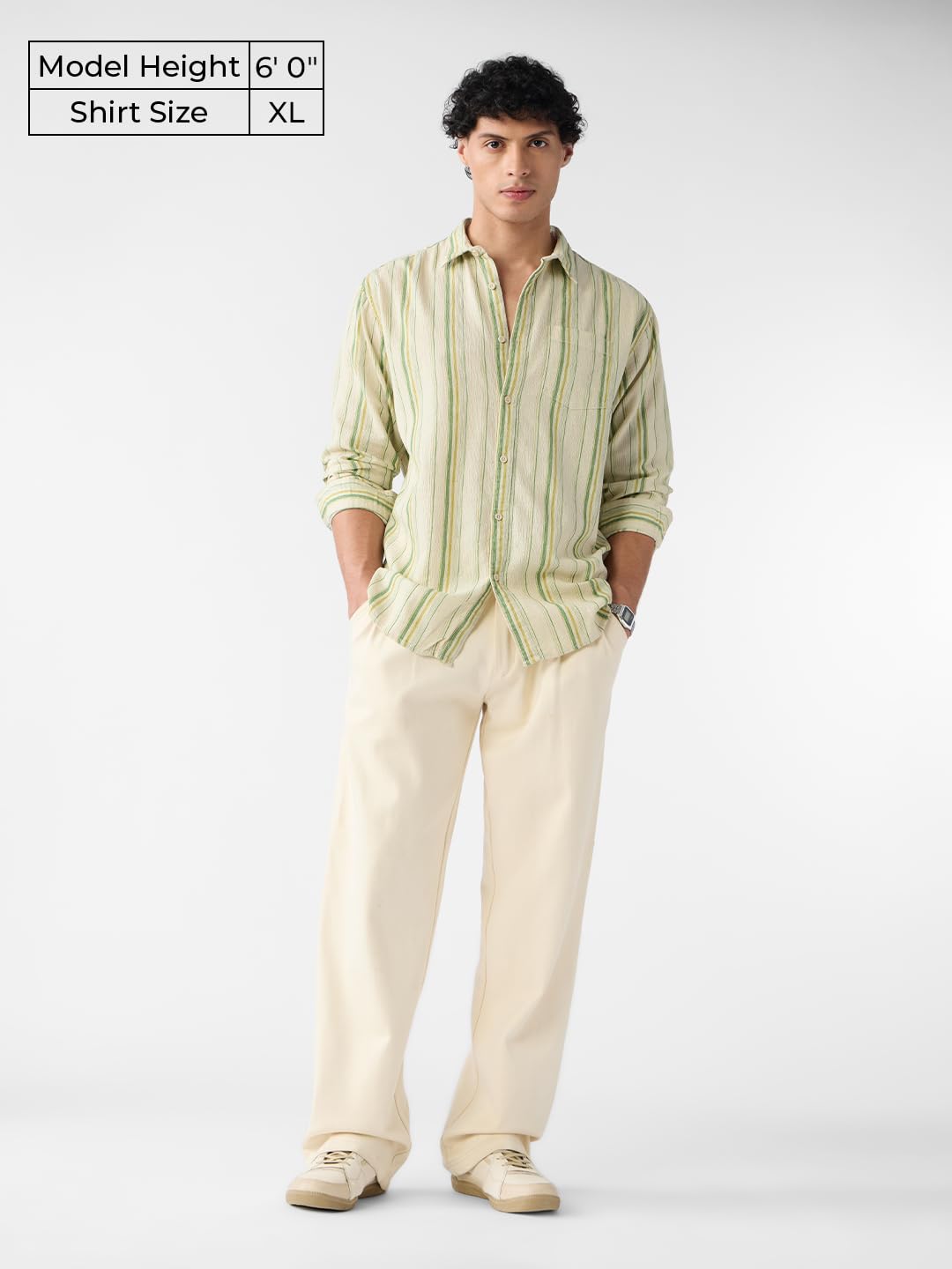 The Souled Store Cotton Linen Stripes: Meadow Men and Boys Long Sleeves Collared Neck Button Front Striped Regular Fit Cotton Linen Shirts