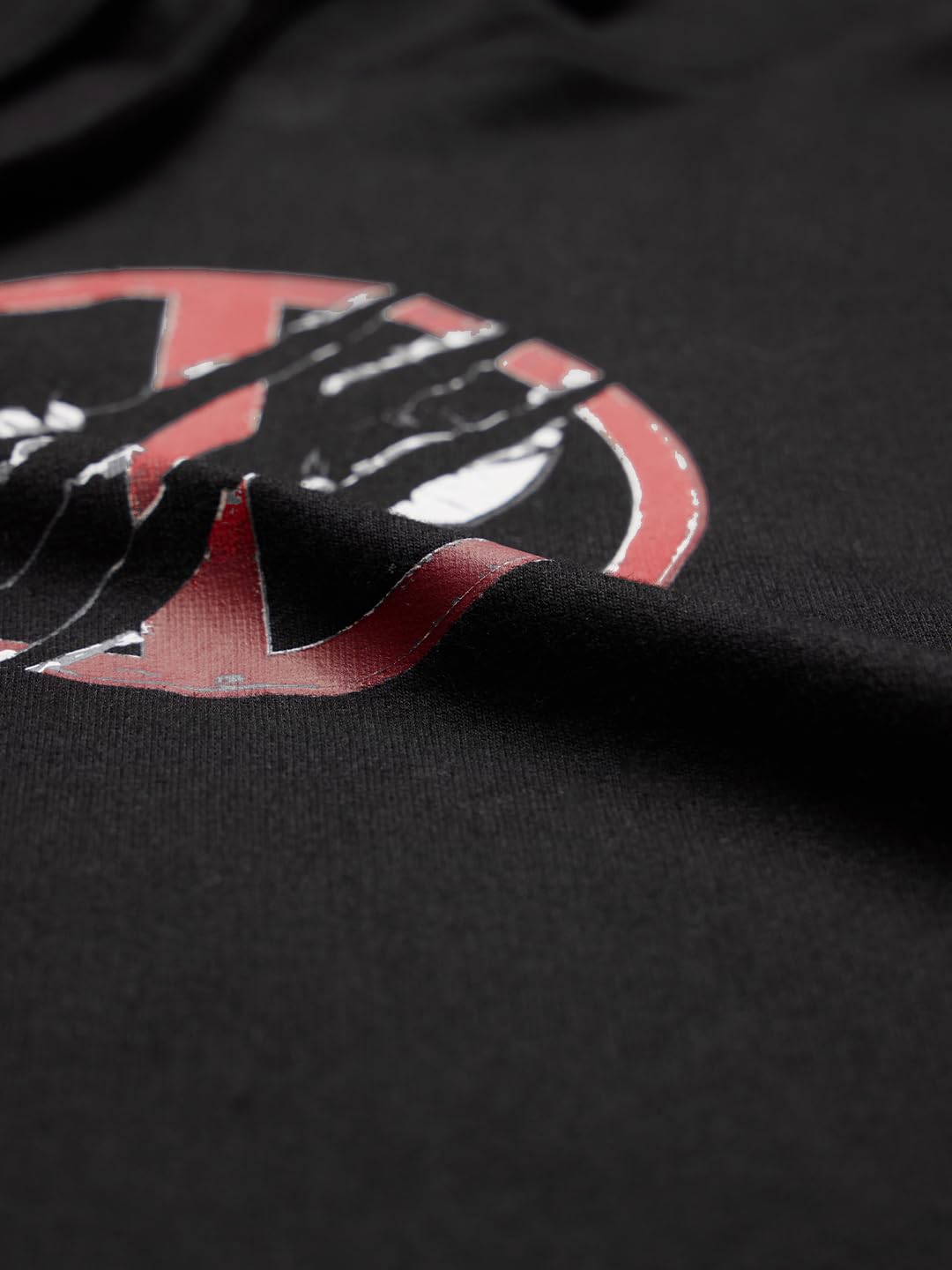 The Souled Store Official Marvel: Deadly Duo Men and Boys Short Sleeves Black Graphic Printed Cotton Oversized Fit Hooded T-Shirts