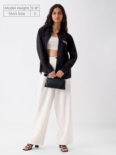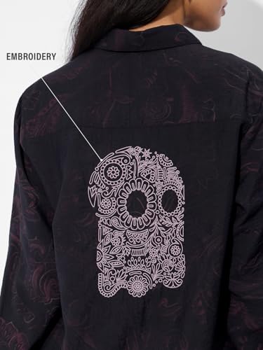 The Souled Store Originals: Indie Soul Women and Girls Long Sleeves Collared Neck Button Front Paisley Printed Viscose Blend Oversized Fit Casual Boyfriend Shirt