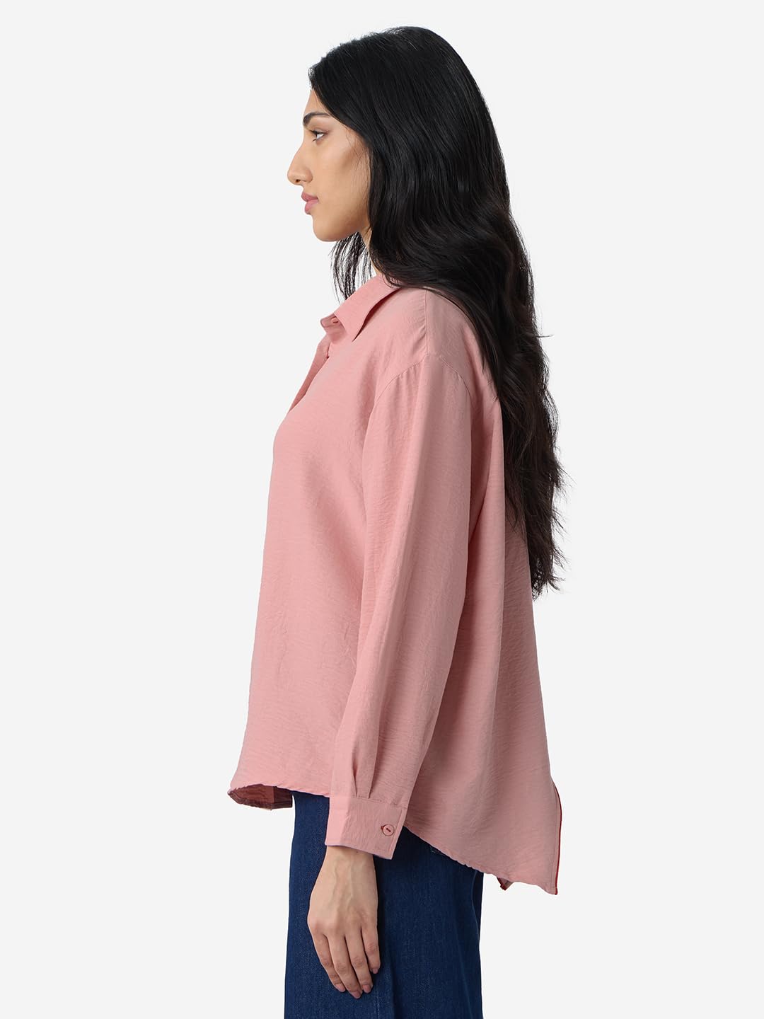 The Souled Store Textured Shirt: Rose Pink Women and Girls Long Sleeves Collared Neck Button Front Viscose Blend Boyfriend Shirts