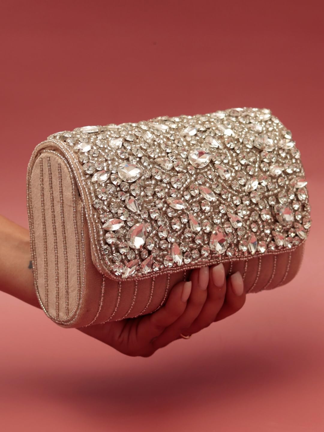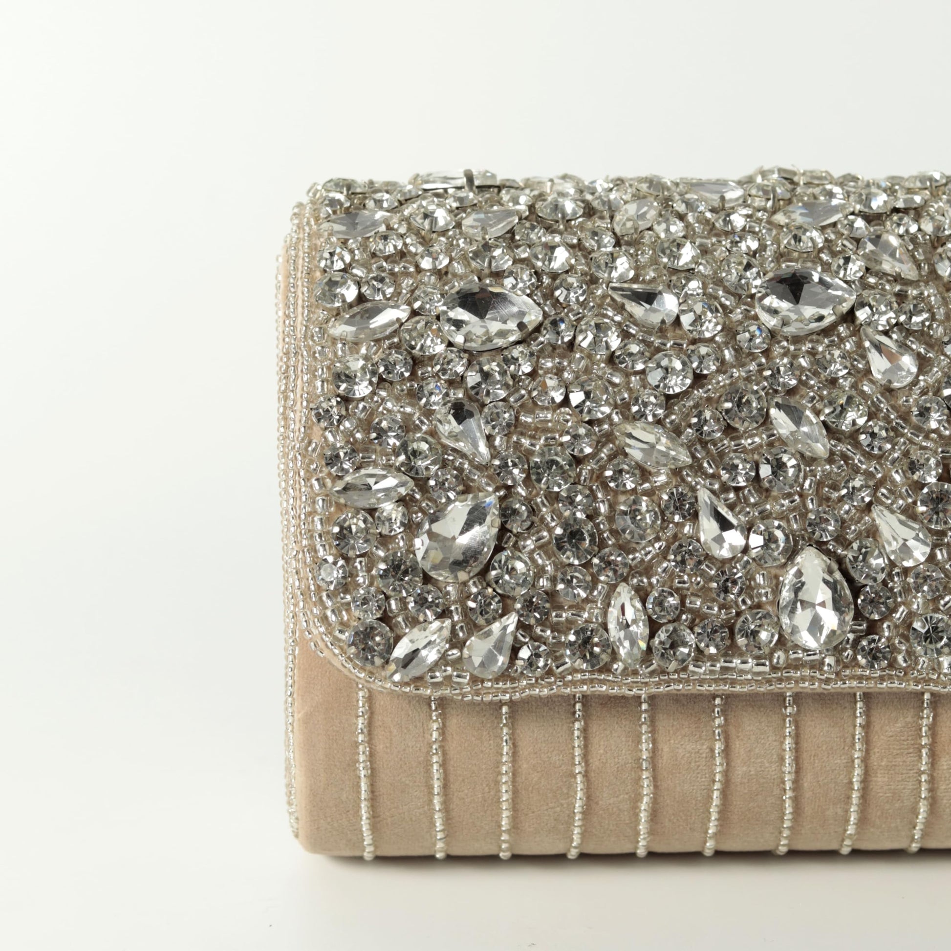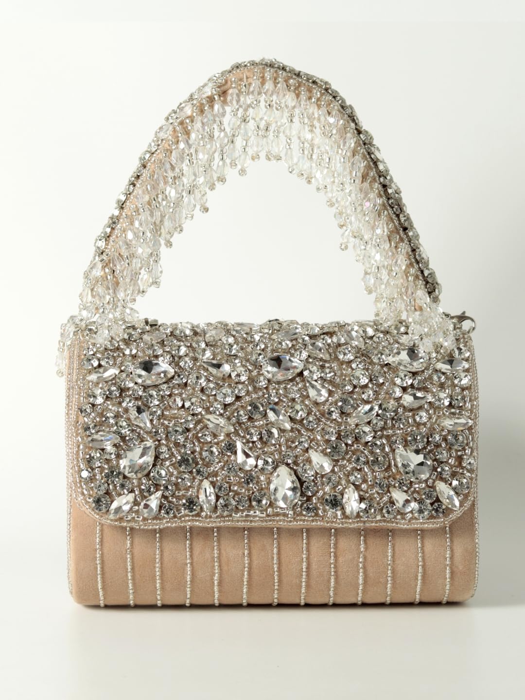 Crafted with the finest quality materials, this Grace trendy handbag features a rich black hue that serves as a canvas for the mesmerizing display of full rhinestones meticulously adorned across its surface. The glistening rhinestones create a captivating play of light, ensuring you make a dazzling entrance wherever you go. Use the Grace Flap Bag to indulge in luxury, grace, and elegance. Whether attending a gala, a cocktail party, or a special occasion, this stunning accessory will elevate your ensemble and leave an unforgettable impression. Own a piece of artisanal excellence and carry a touch of India’s heritage wherever you go.