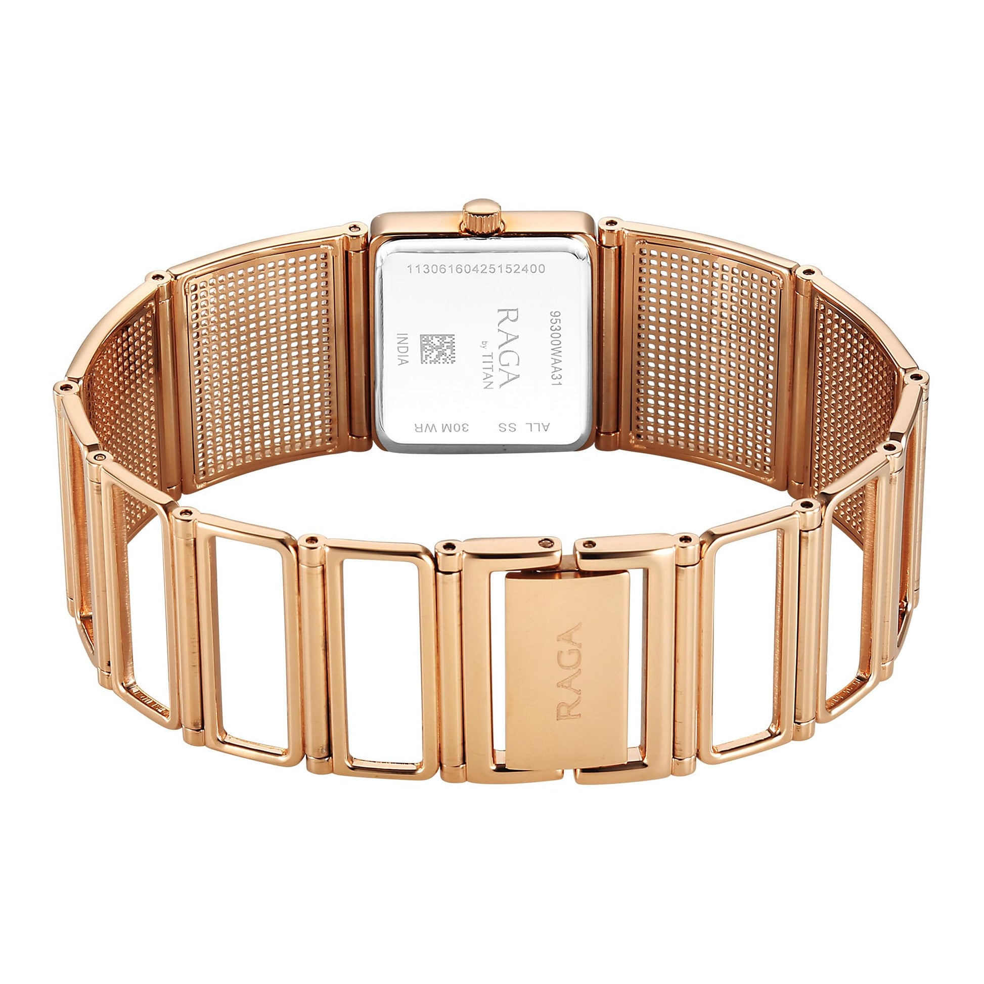 Titan Raga Ethereal Quartz White Rectangular Dial Women's Watch | Stainless Steel Strap Material | Watches for Man Analog - 95300WM01