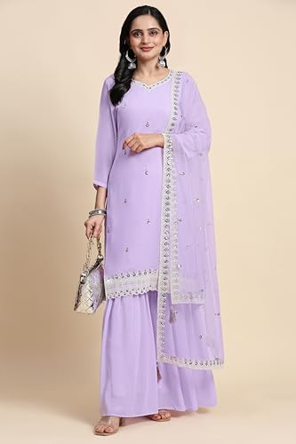 TRENDMALLS Women's Georgette Embroidery Sequins Work Kurta Sharara Set with Dupatta (G251-LightPurple-XXL)
