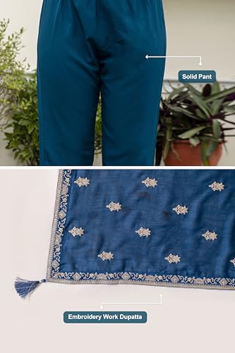 - Stitched Type: Ready to Wear Stitched Salwar Suit Set || Package Contents: 1 Kurta Pant Dupatta