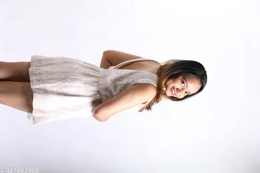 NameTrendy Sleeveless White Mini Dress for Women Party Wear Sequin Detailing with Flared Hem Elegant Western Outfit for Evening, Clubbing, or Casual Outings Stylish and Comfortable Fit