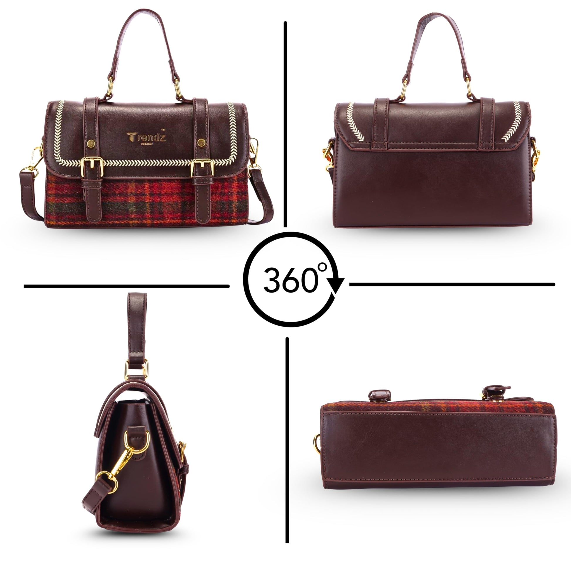 - 2️⃣ Premium Faux Leather with Elegant Textures Crafted using high-quality vegan leather and enhanced with woven textures or plaid fabric detailing (depending on variation) for a refined, luxury-inspired finish.
